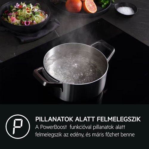BOOSTER FUNKCIÓ: FORRÓ ZÓNÁK, PILLANATOK ALATTHasználja a főzőlap turbó fokozatát, ha gyorsan intenzív hőre van szüksége. Ez a funkció extra energialöketet ad, így a főzőzóna pillanatok alatt eléri a legmagasabb hőmérsékletet. |