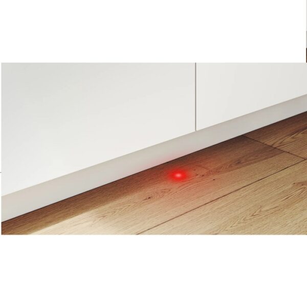 Egy piros fény a padlózaton tájékoztatja, hogy az Ön teljesen beépített mosogatógépe még mindig dolgozik, vagy már befejezte.
